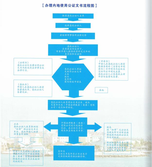 2、用于中國內(nèi)地的公證:香港有一部分律師具有中國委托公證人資格,經(jīng)過這些律師處理的文件可以用于內(nèi)地的相關(guān)機(jī)構(gòu)。通常是這些律師將相關(guān)的文件處理后,拿到中國內(nèi)地派駐香港的公證處做公證,蓋章。公證蓋章之后,該文件即可被內(nèi)地政府機(jī)構(gòu)所接受。比如在香港成立的公司,需要在中國成立分公司、辦事處、投資辦廠等,內(nèi)地相關(guān)機(jī)構(gòu)要求香港公司提供的文件要在香港“做公證”,之后方能用于中國內(nèi)地的注冊(cè)程序。